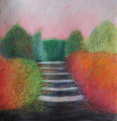 - Trappa, oljepastell, 28×24 cm