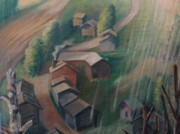 Per Hilding 1911-1998. vigde sitt liv åt konsten. Vid 16 års ålder studerade Per Hilding vid Fredrikssons privata konstskola i Sthlm. I övrigt var han i många avseenden självlärd. Stor mångsidighet präglar konstverken, verklighetstrogna natur – människoporträtt till tavlor som förmedlar djupa känslor, samtidigt som de lämnar mycket över till betraktarens egna funderingar. Under konstrundan pågår samtidigt en utställning på gården under temat “Porträtt”.