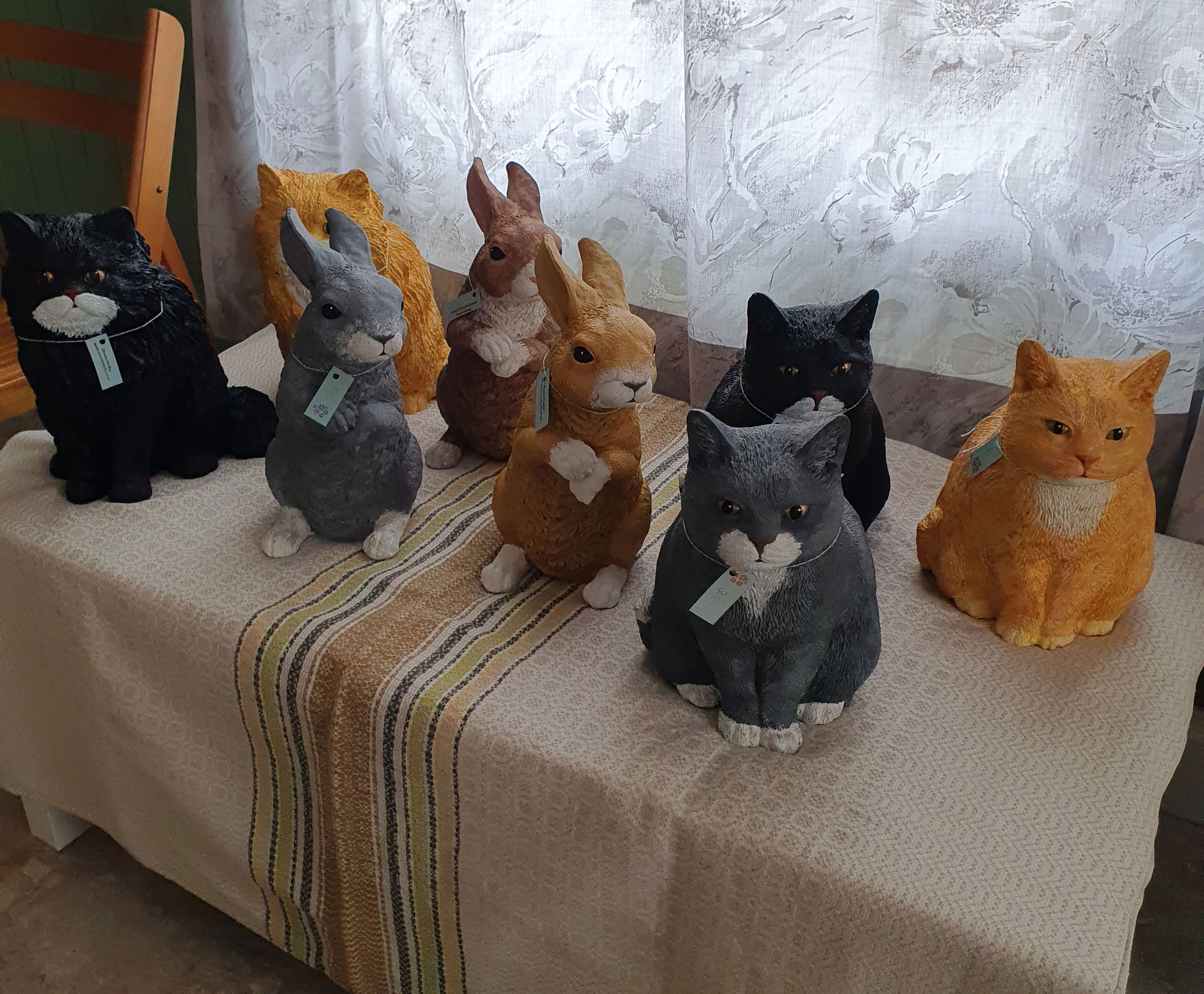 Susanne Nyman Lindberg heter jag. Kommer ifrån Södermanland, men fann kärleken och flytta till Gagnef. Jag har alltid varit kreativ och provat på många saker hela tiden. Bra egenskaper bland andra när man har jobbat som fritidspedagog. 2017 testade jag betonggjutning och jag och min man tyckte det var kul och sen har vi fortsatt att gjuta. Det blir mest katter i olika storlekar och former. men vi har också gjutit hönor, tuppar. änglar och ljusstakar. Vi gjuter oftast på hösten och sen målar jag figurerna under våren. Jag gör också andra saker som tex scrapbooking. Då tillverkar jag mest jul och gratulationskort.